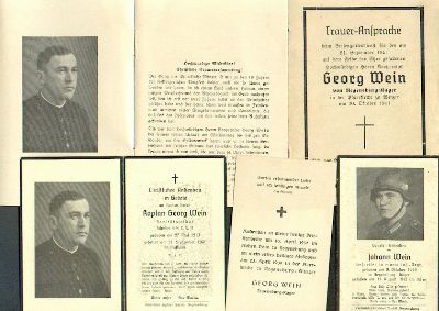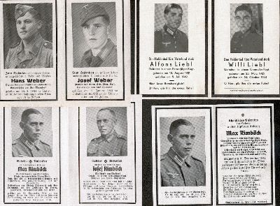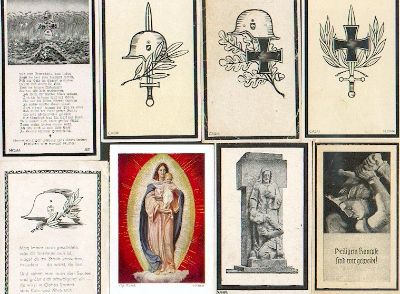 Einige Beispiele : Rückseiten Sterbebilder patriotisch gehalten.