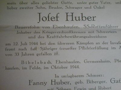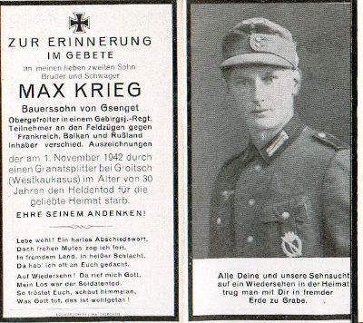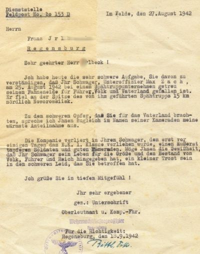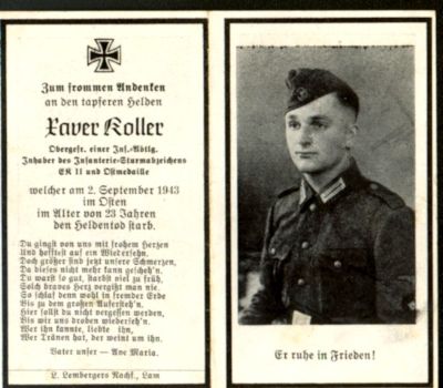 Beispiel : 1. Sohn gefallen 1940 Frankreich - 2. Sohn gefallen 1943 Russland.