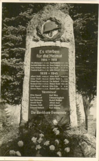 Hier wurden nur die Gefallenen und Vermissten geehrt.Bei anderen Tafeln auch die der Weltkriegsteilnehmer.