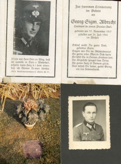 Andenken : Sterbebild , Foto und Farbfoto des Soldaten Leutnant Albrecht.Infasionsfront.