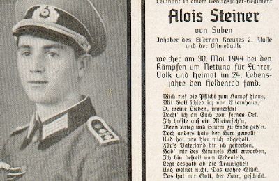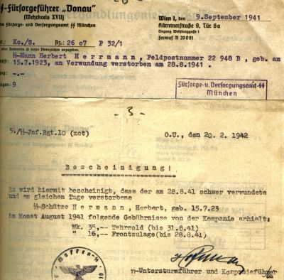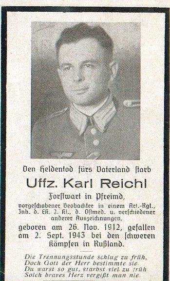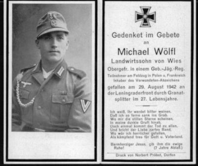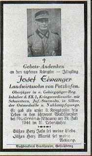 Gefallen Juli 1943 bei den schweren Abwehrkämpfen am Ladogasee n. 4 jähr. Fronteinsatz.