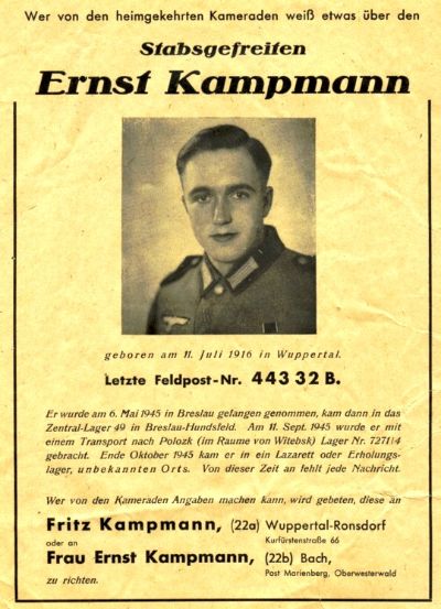 Heimkehrende Kriegsgefangene sollten so ermuntert werden Informationen zum Verbleib vermißter Kameraden zu geben.