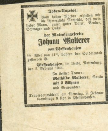 Vom hohen Norden erhielten wir die Nachricht.                                                                                                                                                                                           Eine der Todesanzeige , aus einer bayerischen Zeitung.