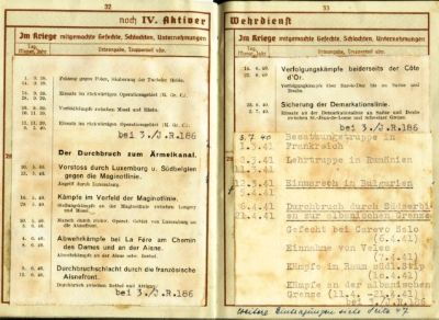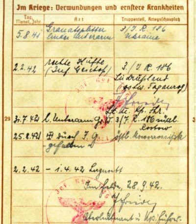 Wehrpass Seite 34 . + das Kreuz steht für gefallen.